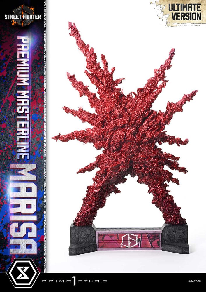 Statuette en résine, dimensions env. 70 x 45 x 34 cm avec socle décor. Modèle fini et peint à la main en édition limitée. Caractéristiques du produit : – Base à thème Street Fighter 6 (avec éclairage LED) – 3 x têtes interchangeables (Sérieux, Baiser, Casque) – 4 x Bras droits (Fléchi, Tenant le casque, Poing embrassant, Bras détendu) – 2 x Supports de tête – 1 x Mur d’effets Méthode d’alimentation par LED : TBA * Veuillez préparer des piles, des câbles USB ou d’autres éléments nécessaires en fonction de la méthode d’alimentation finale.