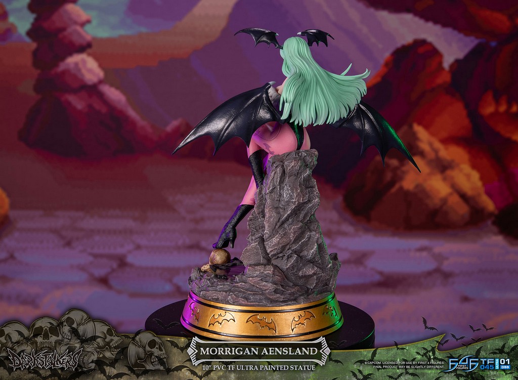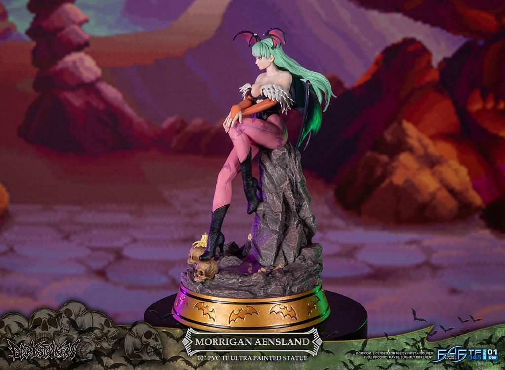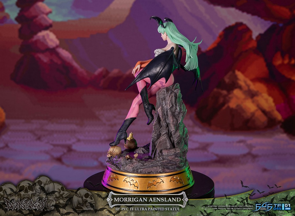 Morrigan est une succube confiante, séduisante et sensuelle de la célèbre famille Aensland. Elle est la prochaine à diriger le royaume démoniaque Makai une fois que son père adoptif, Belial Aensland, sera décédé. Sa force, sa personnalité et son comportement la rendent unique et aimée de tous, inspirant même le concept même de cette statue. De la position de ses jambes à la façon dont elle pose ses mains sur ses genoux, on sent facilement sa nature envoûtante et sensuelle.