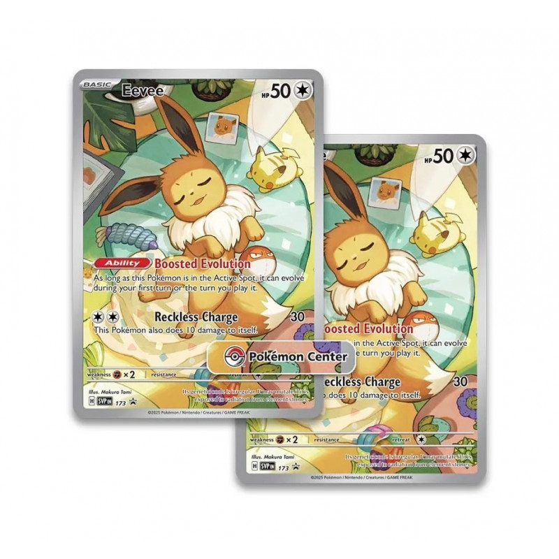 Le très populaire coffret dresseur d’élite Évolutions Prismatiques est à l’effigie d’Évoli. Il inclut 9 boosters Pokémon EV8.5 ainsi qu’une très belle carte promo “illustration rare” d’Évoli. Car oui, l’extension Pokémon EV8.5 “Évolutions Prismatiques” est principalement centrée sur le Pokémon Évoli et ses Évolutions dans leur forme Pokémon-ex Téracristal Stellaire.