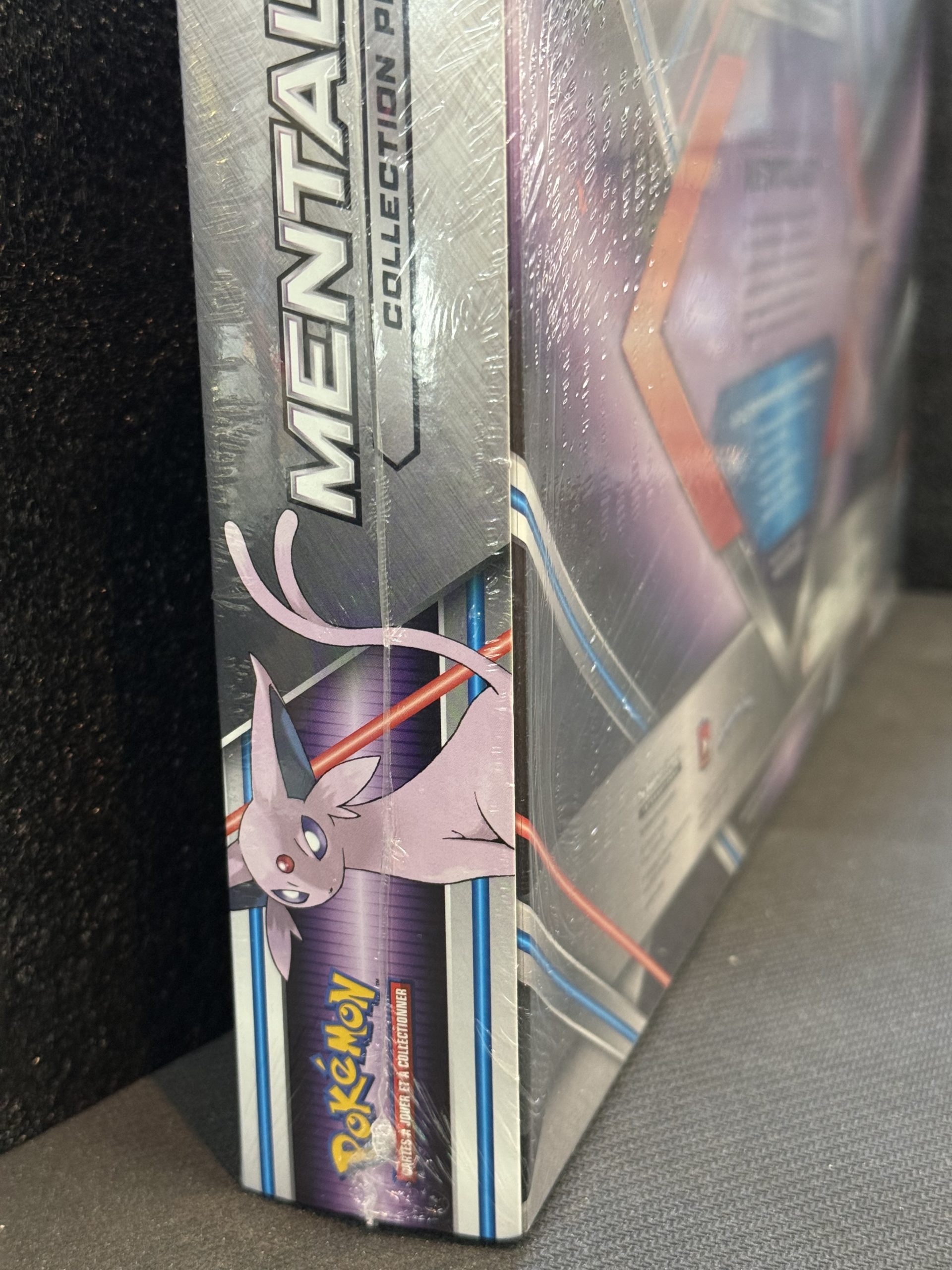 contient 1carte promo MENTALI GX, une carte Jumbo, 2boosters soleil et lune, 2 boosters ombres Ardentes 2 boosters gardiens ascendant,