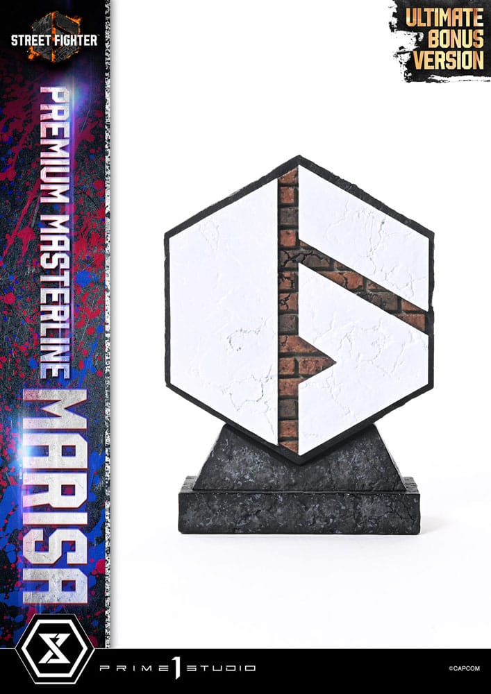 Statuette en résine, dimensions env. 70 x 45 x 34 cm avec socle décor. Modèle fini et peint à la main en édition limitée. Caractéristiques du produit : – Base à thème Street Fighter 6 (avec éclairage LED) – 3 x têtes interchangeables (Sérieux, Baiser, Casque) – 4 x Bras droits (Fléchi, Tenant le casque, Poing embrassant, Bras détendu) – 2 x Supports de tête – 1 x Mur d’effets – 1 x Support pour logo Marisa Graffiti [BONUS PART] Méthode d’alimentation par LED : TBA * Veuillez préparer des piles, des câbles USB ou d’autres éléments nécessaires en fonction de la méthode d’alimentation finale.